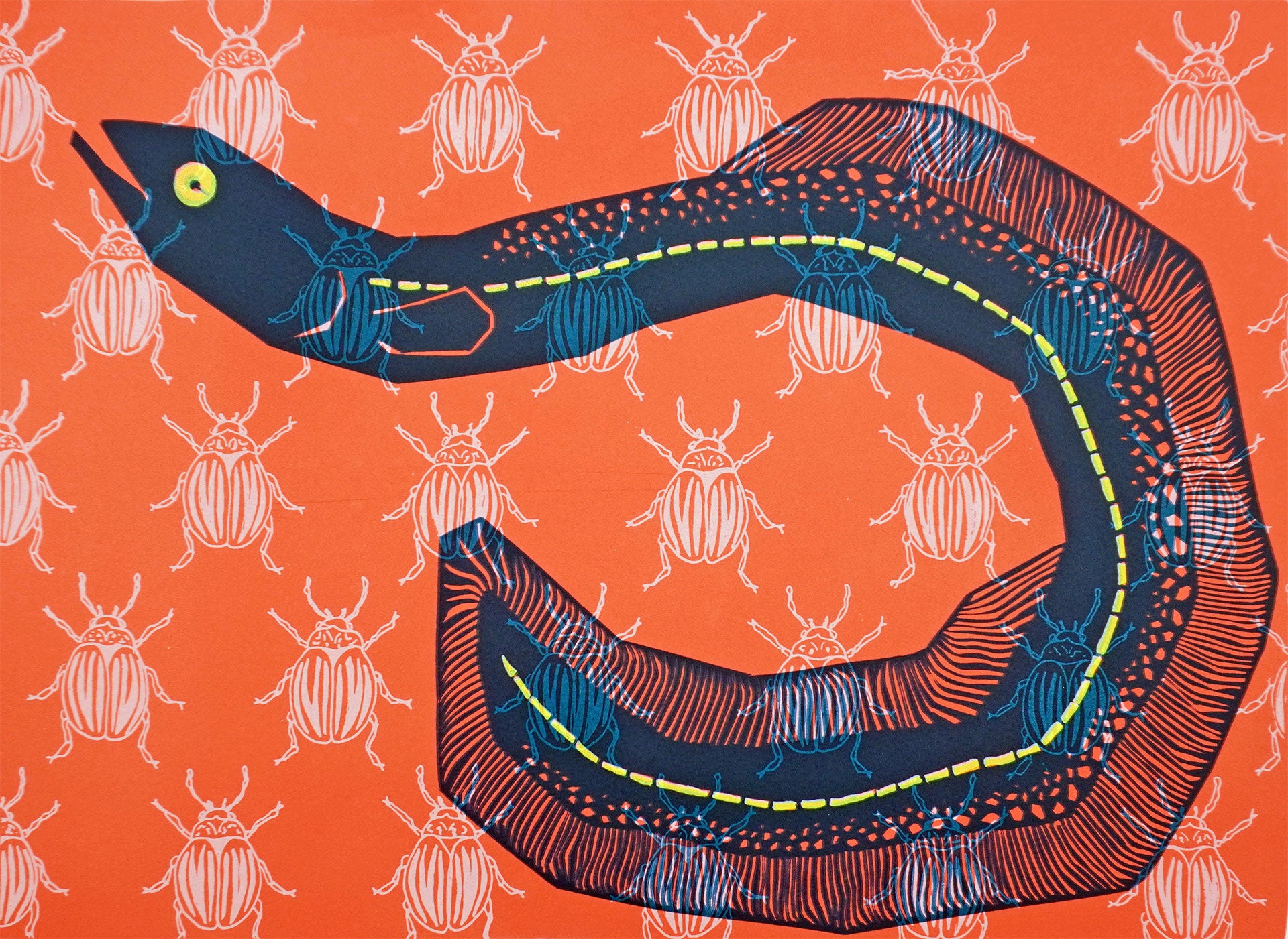 Left: Seaweed II by Cindy Robinson-Begg. Right: European Eel by Britney Mado
