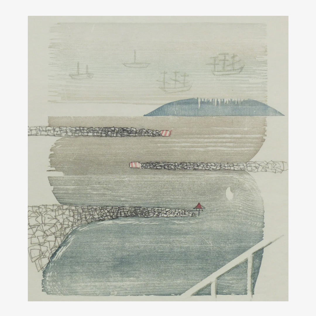 Joanna works in woodcut carefully choosing the piece of wood based on the grain – this builds up texture within her beautiful prints and she often uses the technique of chine collé to add depth and colour within her pieces, which depict her local surroundings in the north east – from fields and cliffs to urban scenes.