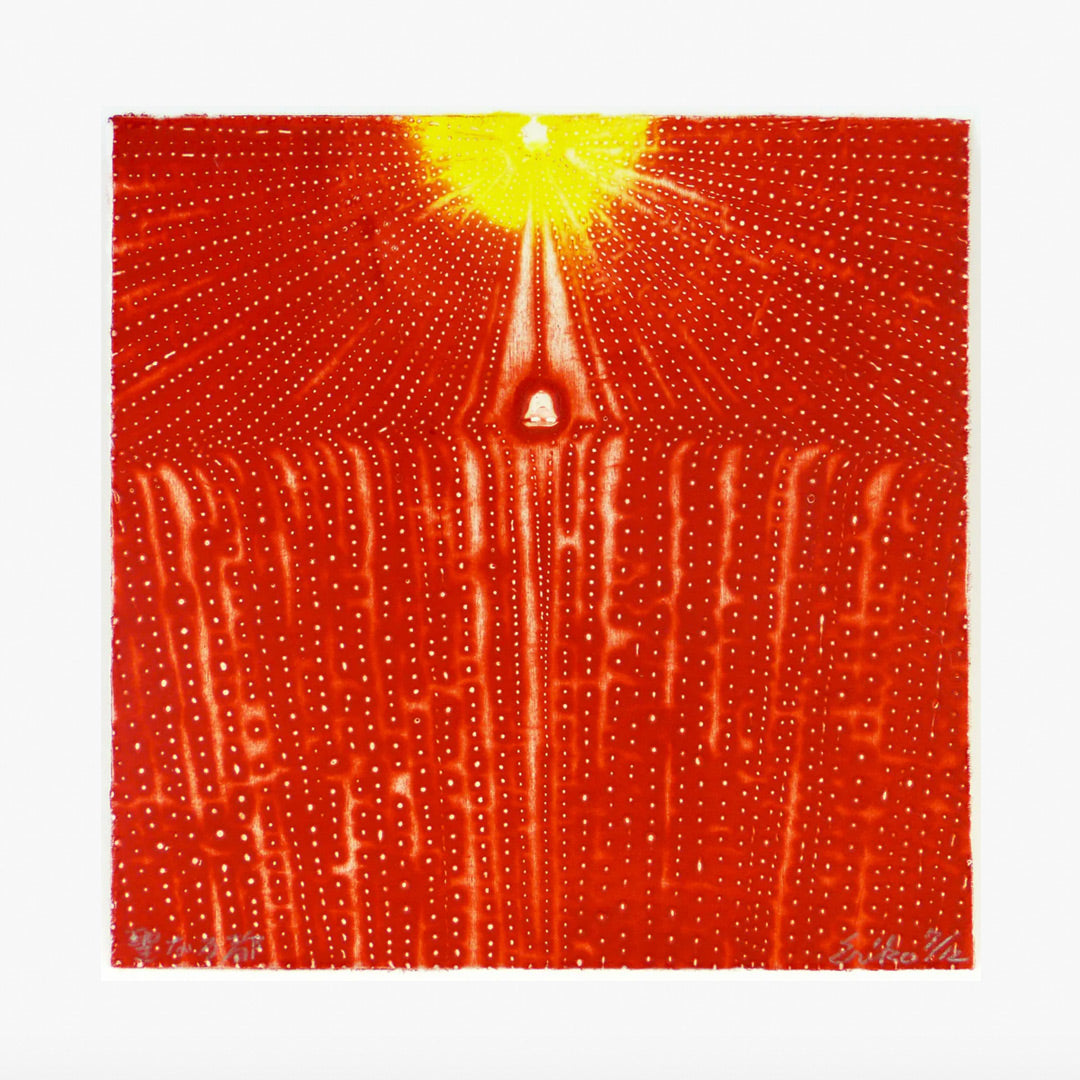 Norman Mathieson was involved in setting up the studio, joining the team from Glasgow Print Studio. He now lives in Japan, makes screenprints, woodblocks and etchings – in this show we show two of his early screenprints which are bold, colourful and joyful.