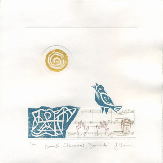 This collection of prints has been made by some of our regular studio users responding to the NHS 'Five Steps to Mental Wellbeing'. The theme is the everyday, simple pleasures that have been so important to us all throughout the challenges of 2020. The prints were exhibited in the windows of Northern Print and Queens Hall Arts in Hexham over the 2020-21 winter time and you can read more about the exhibition here.