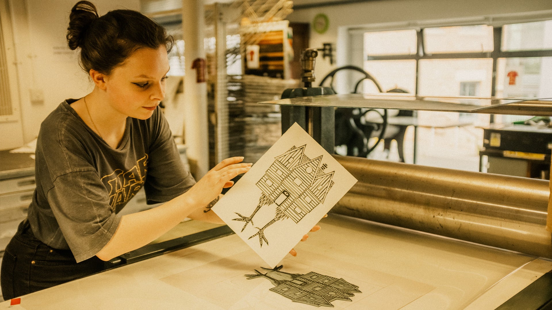 Based in Newcastle upon Tyne's cultural quarter of Ouseburn Valley close to the city centre, our building is equipped with a studio, gallery and education space all dedicated to printmaking. Learning and participation are at the heart of what we do. We support artists who make original prints in their professional practice as well as working with school groups and running a programme of classes and events for everyone.