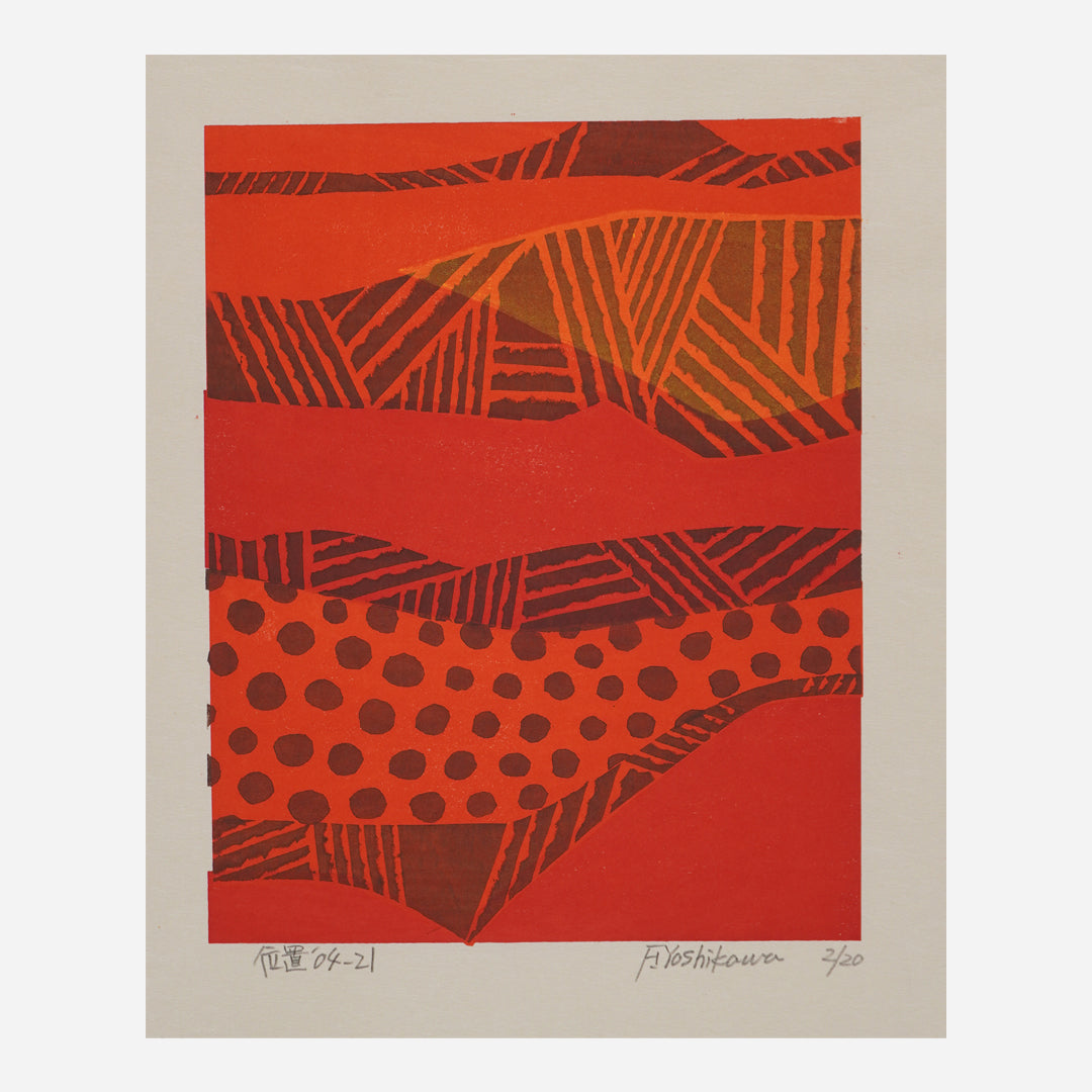 Fusako uses traditional Japanese woodblock techniques to create her abstract, bold and dynamic prints, often using multiple wood blocks to make her beautifully composed images. The shapes and rich colours used by Fusako are her joyous response to life.