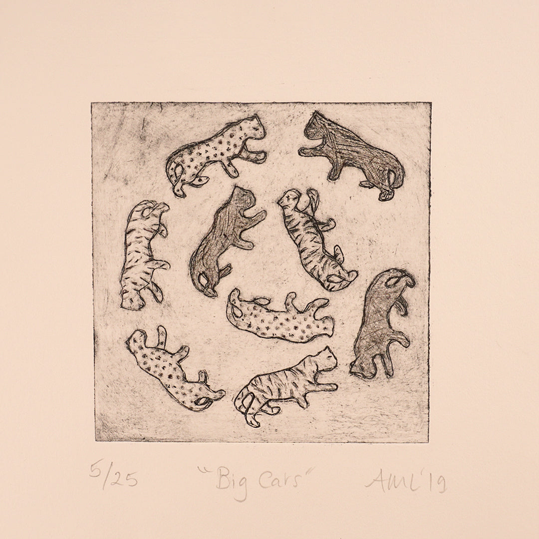 A curated collection of 20:20 prints with original work from 4 printmakers: