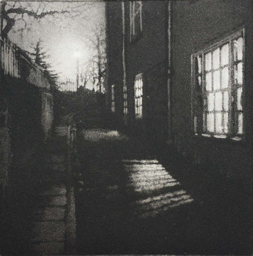 Anja Percival has understandably gained many avid collectors of her evocative work.  This etching was created in 2020 and forms part of a series of atmospheric miniature etchings of spaces around Anja's home town of Durham.