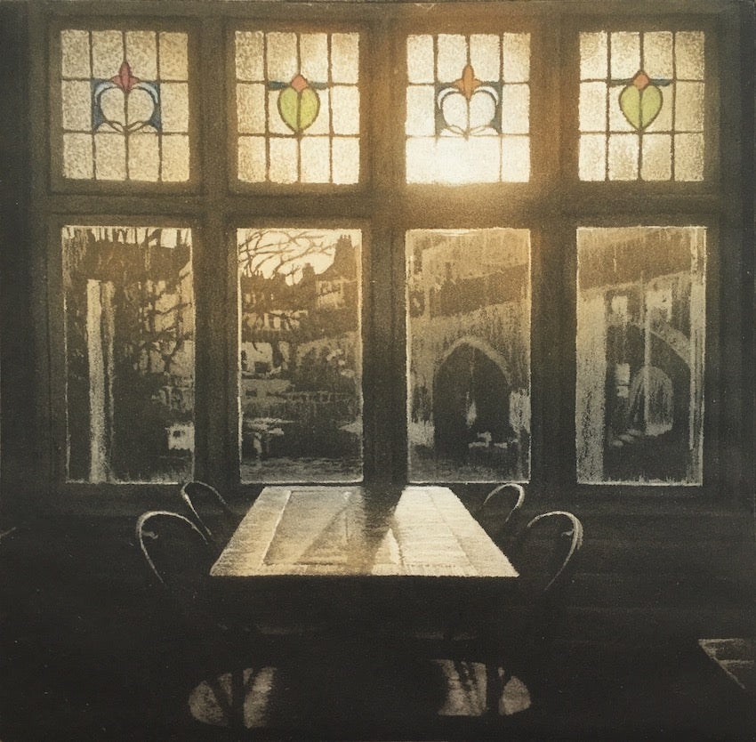 Anja Percival has understandably gained many avid collectors of her evocative work.  This etching was created in 2020 and forms part of a series of atmospheric etchings of interiors in addition to spaces around Anja's home town of Durham.