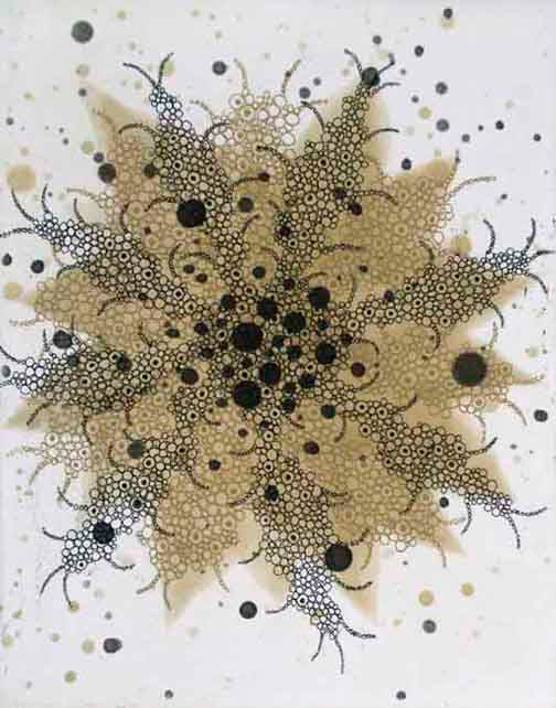 Seiko Tachibana’s intaglio prints have a poetic beauty that explores the essential patterns of life. With delicate repeated marks and richly hued ‘blooms’, the images suggest both a world in microcosm as well as the immensity of the universe. The technical skill, poise and profound beauty of these works shows the traditional qualities of Japanese printmaking which continue to captivate today.