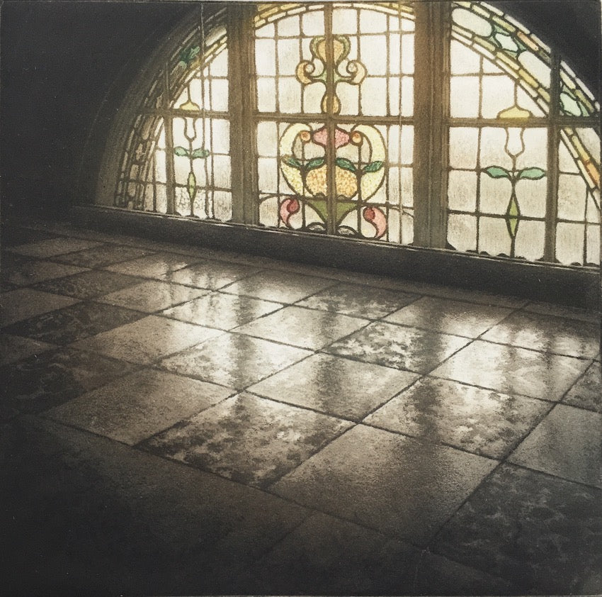 Anja Percival has understandably gained many avid collectors of her evocative work.  This etching was created in 2020 and forms part of a series of atmospheric etchings of interiors in addition to spaces around Anja's home town of Durham.