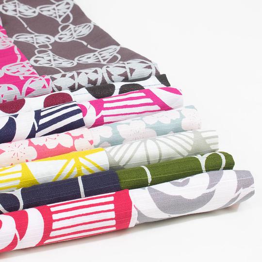 This beautiful double-sided cotton wrap measures 48cm x 48m and is screenprinted on cotton in Japan.