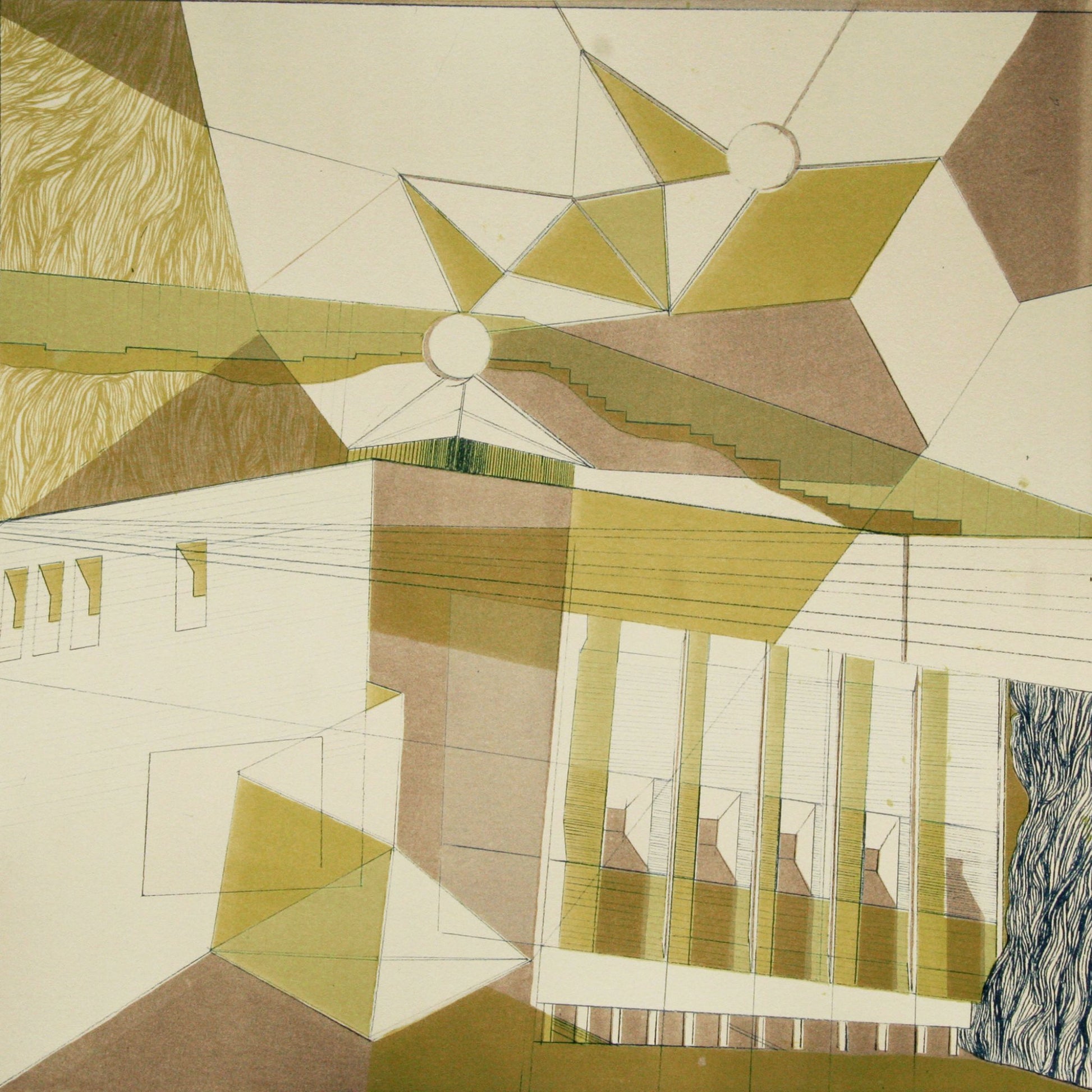 Sleigh’s work asks questions about the built environment. Through drawing, she investigates attitudes to space as expressed through architecture and its relationship to the landscape.