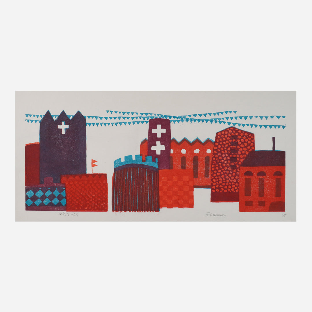 Fusako uses traditional Japanese woodblock techniques to create her abstract, bold and dynamic prints, often using multiple wood blocks to make her beautifully composed images. The shapes and rich colours used by Fusako are her joyous response to life.
